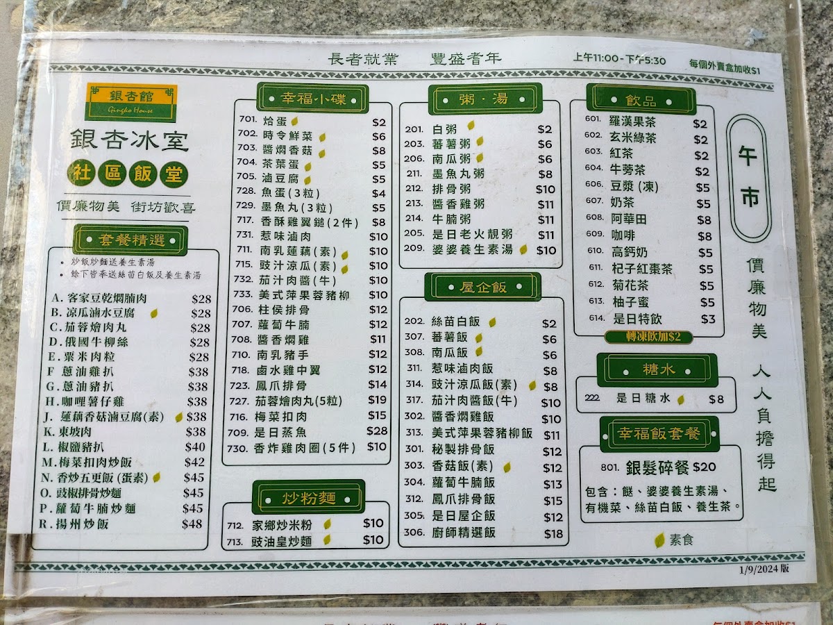 Gingko House Menu